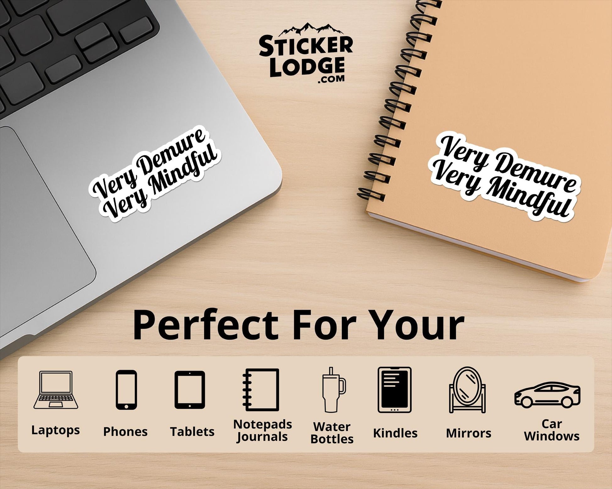 Our Very Demure Very Mindful Vinyl Sticker is waterproof, durable, and perfect for personalizing your laptops, water bottles, phone cases, tablets, Kindles, planners, notebooks, journals, tumblers, mugs, mirrors, cars, motorcycles, and more!