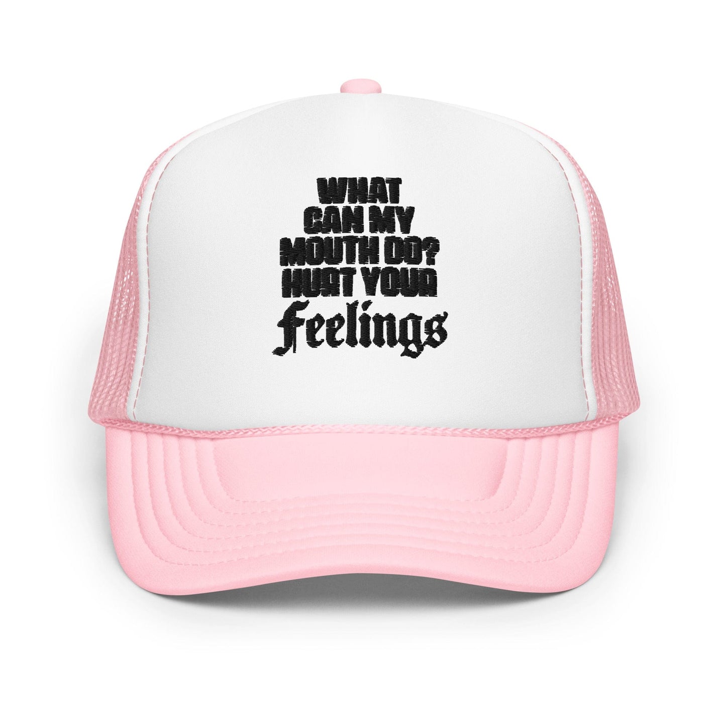 Featuring the audacious "What Can My Mouth Do? Hurt Your Feelings" slogan, this cap is more than just a sun-shield.
