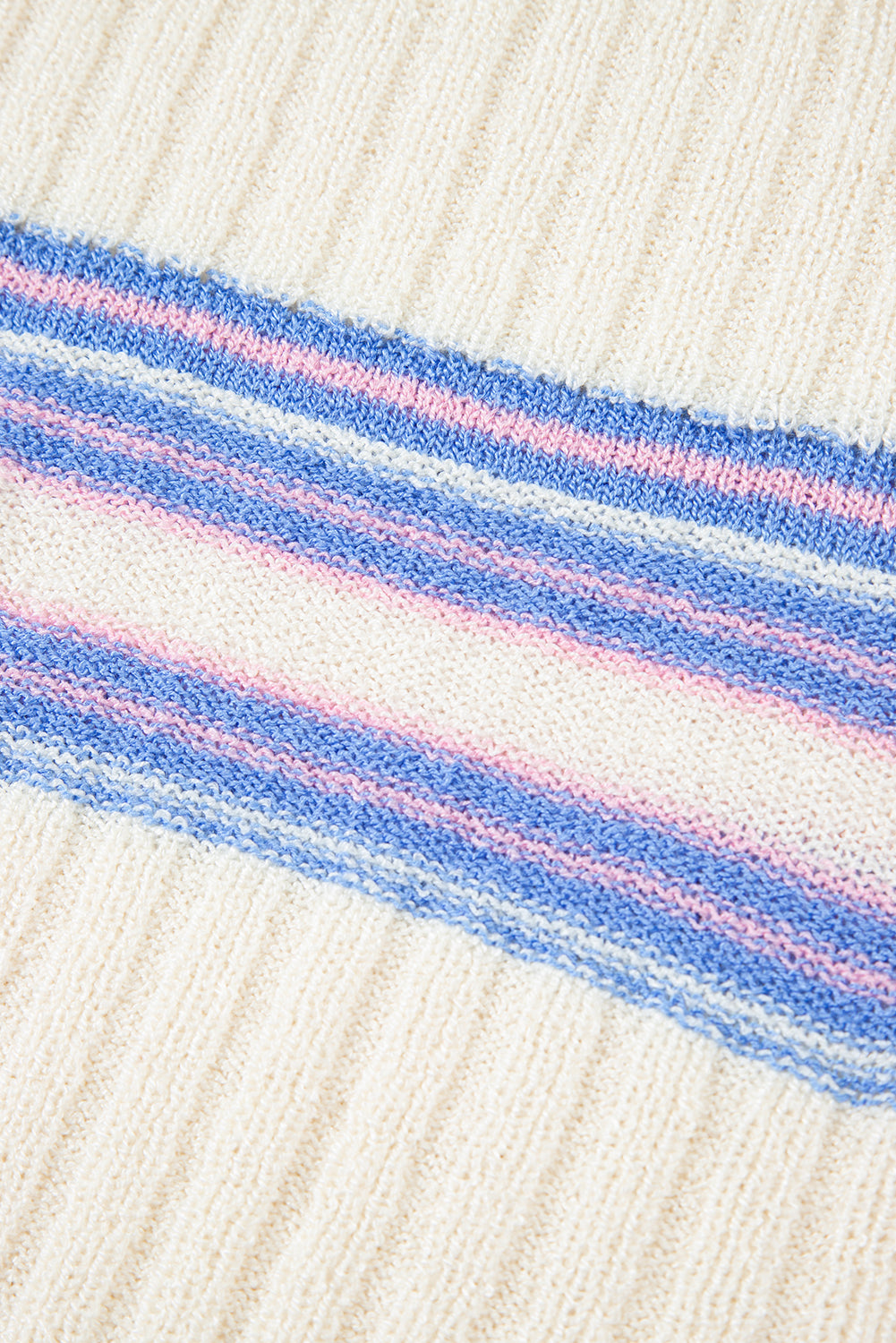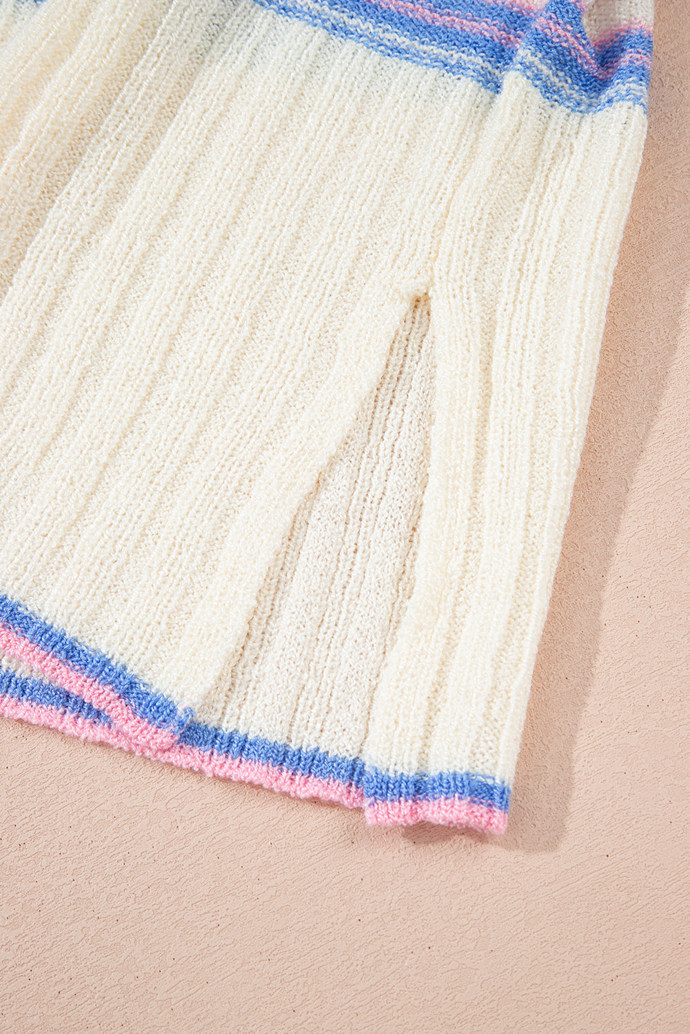 White Striped V Neck Dolman Sleeve Rib Knit Oversized Sweater with Slits