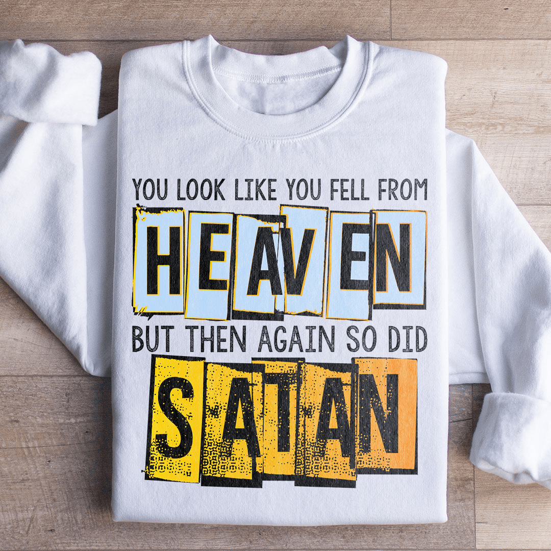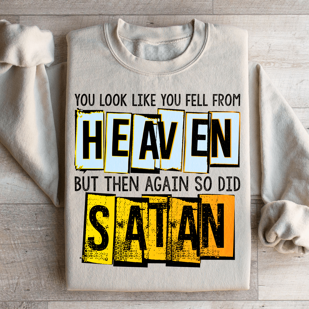 Embrace the charm of a light-hearted compliment with our "You Look Like You Fell From Heaven" sweatshirt. With its unique design and casual appeal, this sweatshirt is a great addition to any wardrobe..